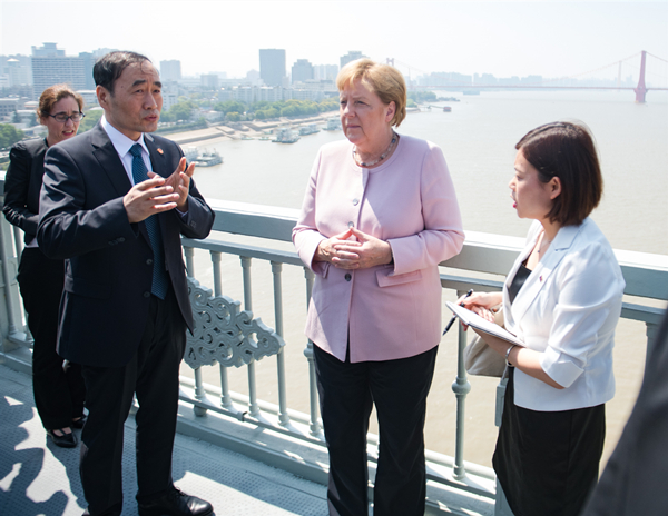 German Chancellor Angela Merkel visits Wuhan Yangtze River Bridge in Wuhan, capital city of central China's Hubei Province, Sept. 7, 2019. (Xinhua/Xiao Yijiu)