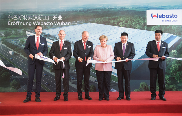 German Chancellor Angela Merkel attends the opening ceremony of a factory of German auto parts supplier Webasto in Wuhan, capital city of central China's Hubei Province, Sept. 7, 2019. (Xinhua/Xiao Yijiu)