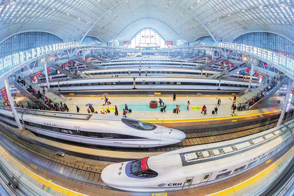 Photo shows the high-speed trains lining in the Wuhan Railway Station, Wuhan, capital city of Hubei Province. After years of construction, a “1.5-hour intercity high-speed railway circle” has taken shape to link Nanchang, Changsha and Wuhan, the capital cities of Jiangxi, Hunan and Hubei provinces. The distance between the three provinces in central China has been greatly shortened.
