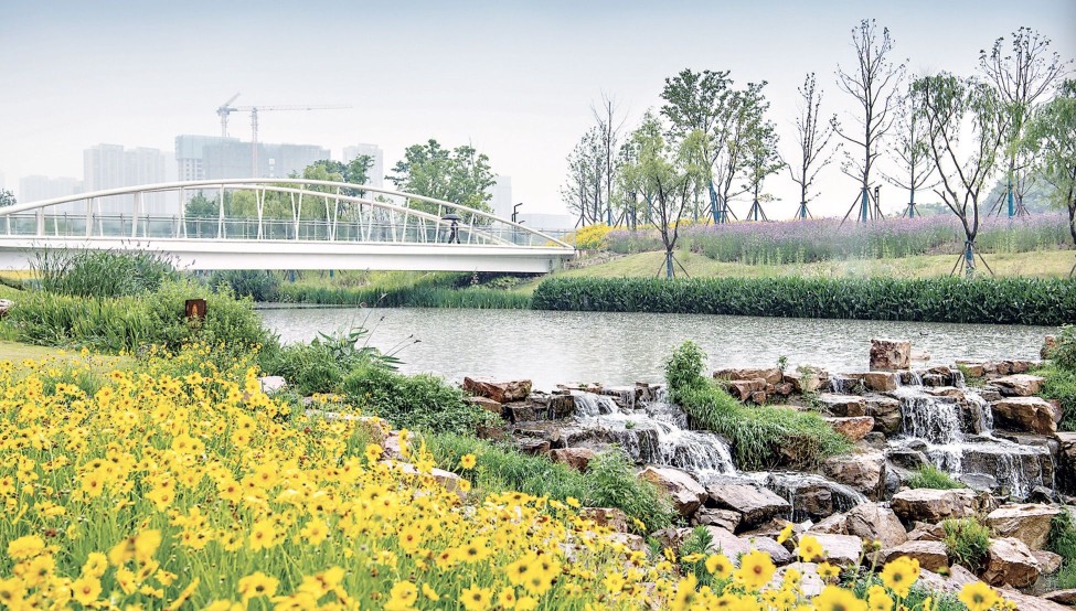 Construction of the 7-kilometer section (from Gaoxin Avenue to Fenghuangshan Street) of the Optics Valley Ecological Grand Corridor has been virtually completed. This corridor is about 10 kilometers long, forming a giant "green ribbon" that links Longquan Mountain and Jiufeng Mountain.