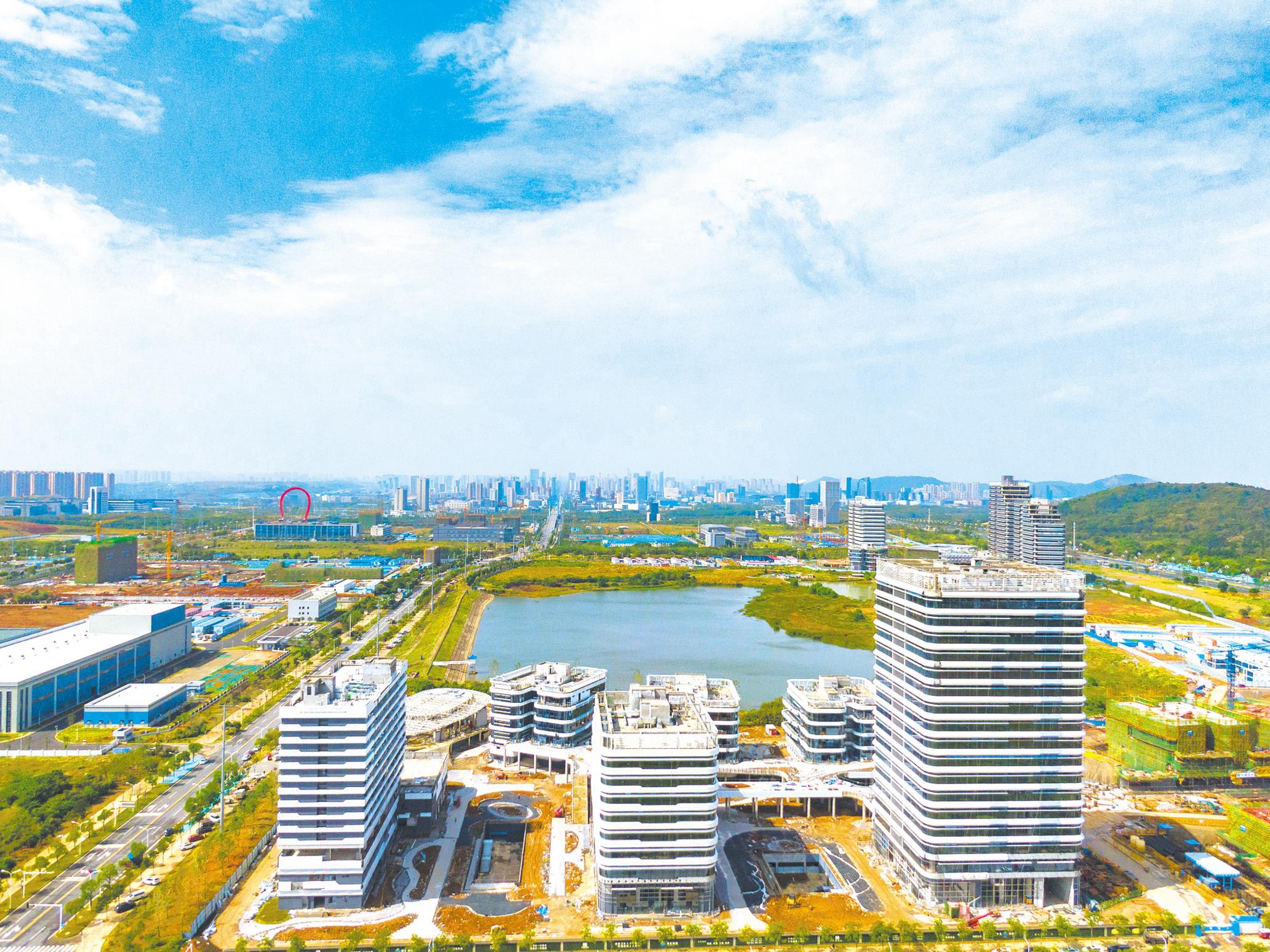 Photo taken on October 9 shows the Digital Economy Industrial Park which is located at Optics Valley, Wuhan, is nearing completion. It is expected that the industrial park will serve as incubator, accelerator and industrial gathering area for enterprises specializing in artificial intelligence, big data, Internet+, AR/VR, block chain and other key areas after being operational. (Photo: Hubei Daily/Wei Lai)