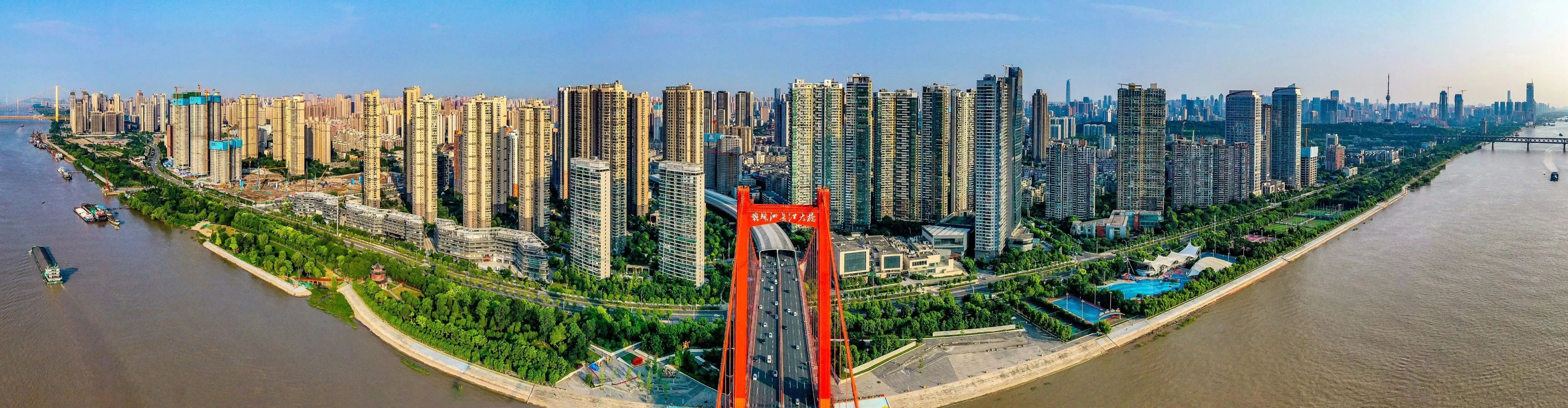 Looking around from the Wuhan Yangtze River Bridge, one can easily view the nearby grand Yingwuzhou and Yangsigang Yangtze River bridges as well as the “rainbow” Qingchuan, “blue fairy tale” Yuehu and “twin tower” Gutian bridges. Under the Yingwuzhou Yangtze River Bridge, there is a bridge-themed park where a 120-meter-long and 3-meter-high bridge-themed sculpture wall impresses visitors.