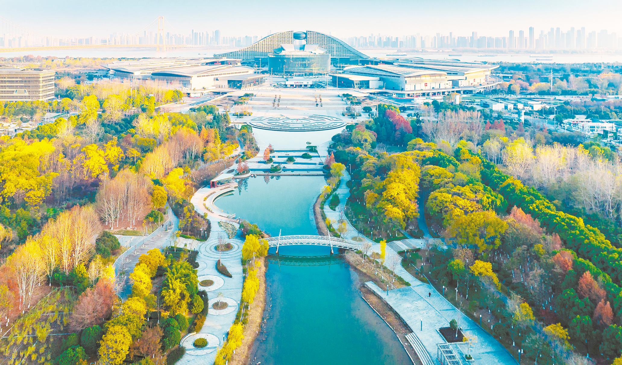Photo taken on December 21 shows the water landscape in the Wuhan International Garden Expo Park, Wuhan City, Hubei Province. In recent years, Hanyang District, where the park is located, has expanded urban green spaces of 6.15 million square meters, and boasted the largest per capita park green space area in Wuhan.