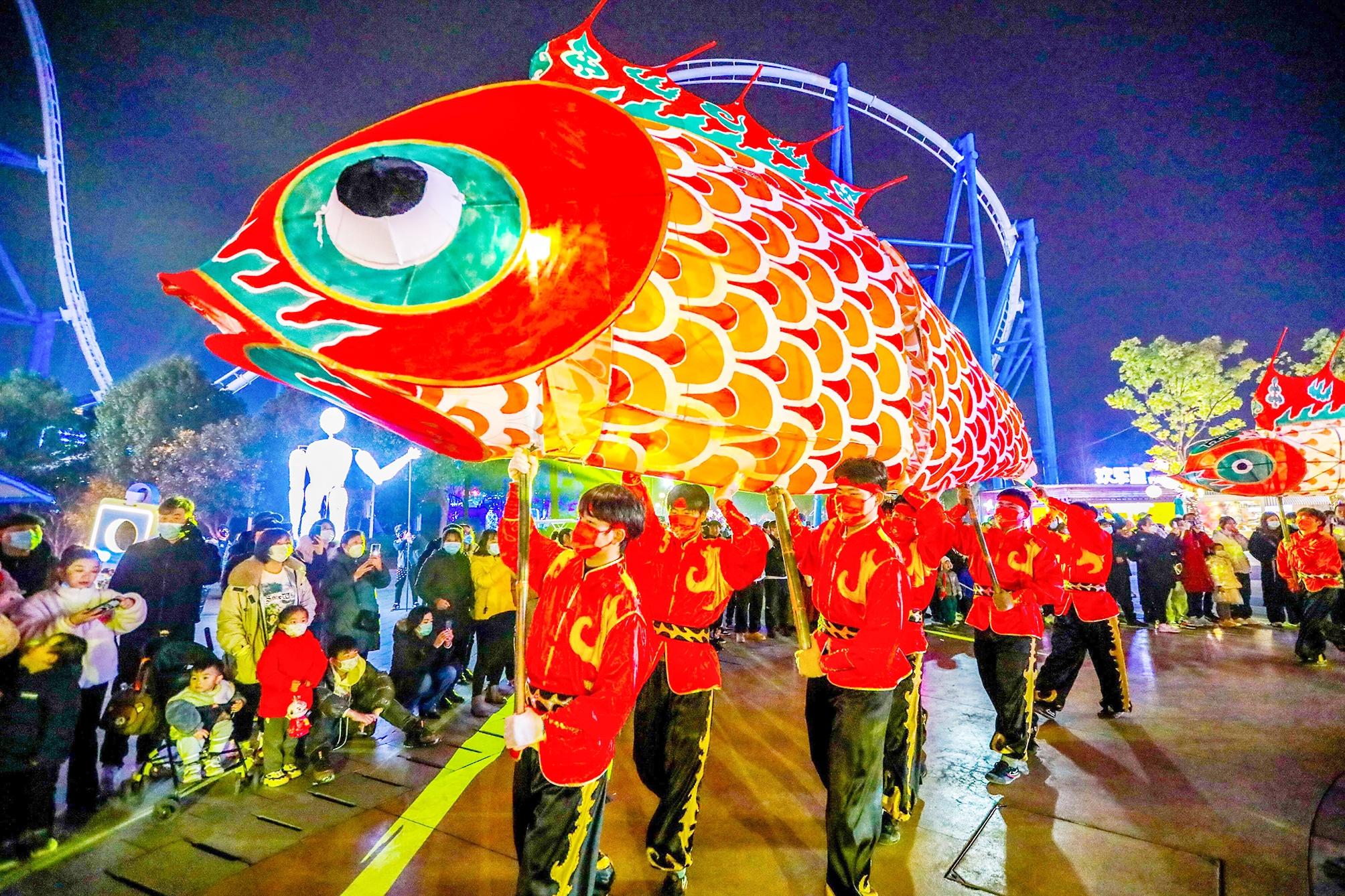 A carnival is held on the banks of the Yangtze River in Hankou, Wuhan.