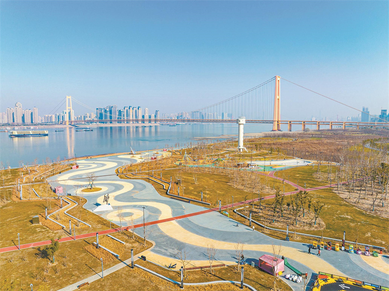 Aerial photo taken on Jan. 30, 2023 shows the winter scenery of Hongshan Bund in Wuhan, capital city of Hubei Province. According to local meteorological service, it is forecast to be fair weather today, with high temperatures above 20 degrees Celsius in Wuhan.