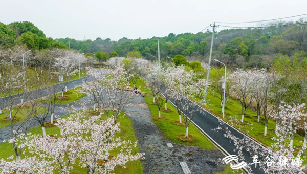 Visitors to Longling Mountain, located in the Wuhan Economic and Technological Development Zone (WEDZ) in Wuhan, Central China's Hubei province, are currently being treated to views of glorious cherry blossoms, now in full bloom.