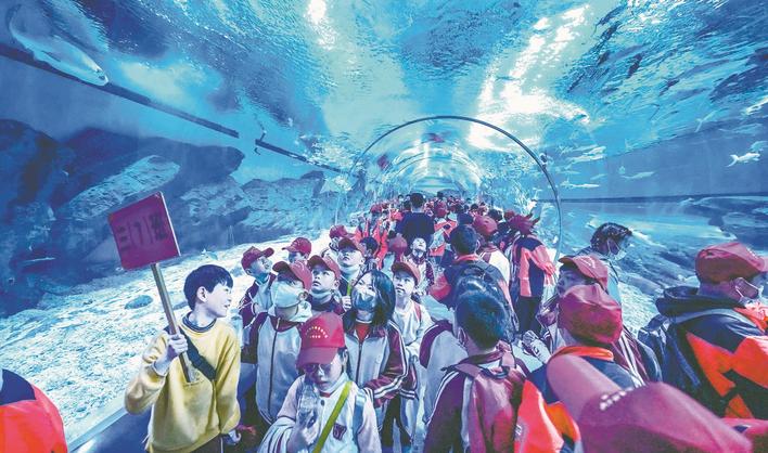 Photo taken on March 31 shows the Wuhan Polar Ocean Park which is visited by more than 40,000 students on the day.