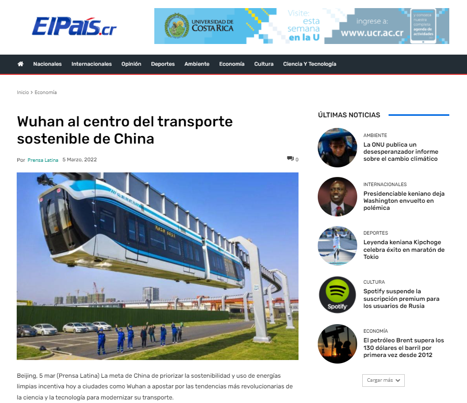 Utilizing magnetic levitation technology and energy-efficient and eco-friendly mechanisms, the suspended monorail runs underneath the elevated bridge. This allows it to occupy minimal space while significantly reducing traffic congestion. Previously, foreign media such as the Latin American News Agency, the Elparis. cr and the Así Somos have covered the sky train.