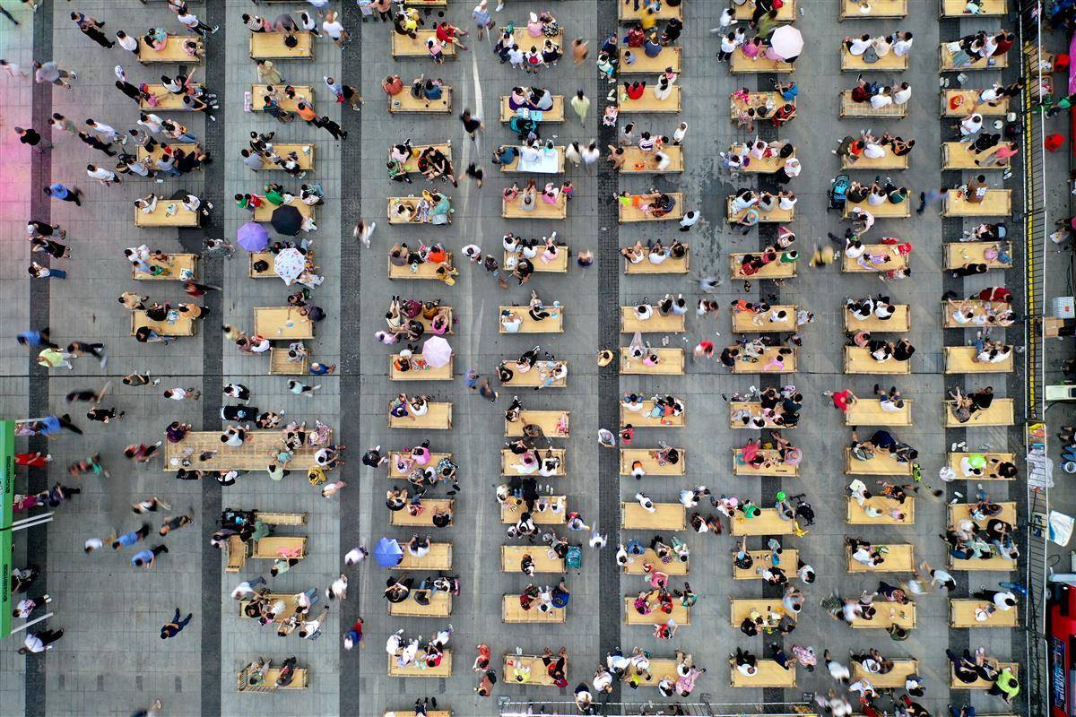 Photo taken on July 14 shows people in Wuhan enjoying performances and coolness brought by bamboo beds in Hankouli of Wuhan Garden Expo Park. The 5th Hankouli bamboo bed cultural festival opened on the day. More than 200 bamboo beds was put in place at the festival to enable visitors to re-experience the traditional Wuhan way of cooling off on hot summer nights. The festival will run until August 22. (Photo: Hubei Daily/Ni Na, Xu Zhigang and Yanjun)
