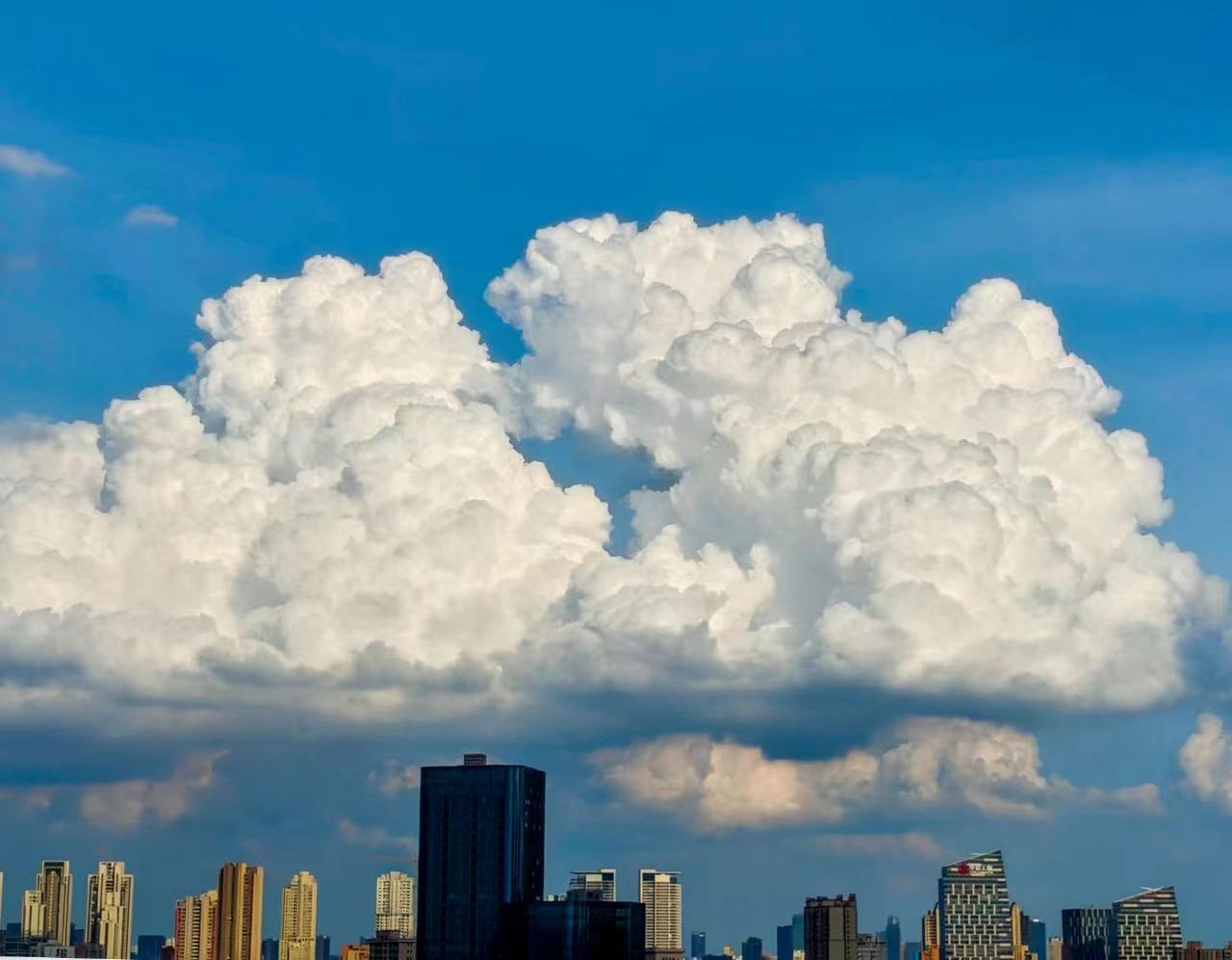 Wuhan's sky during July is a masterpiece of fluffy clouds and serene blue hues.