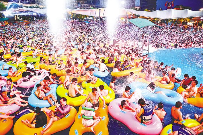 People have fun at the Wuhan Playa Maya Water Park on August 5 in Wuhan, Hubei's capital city.