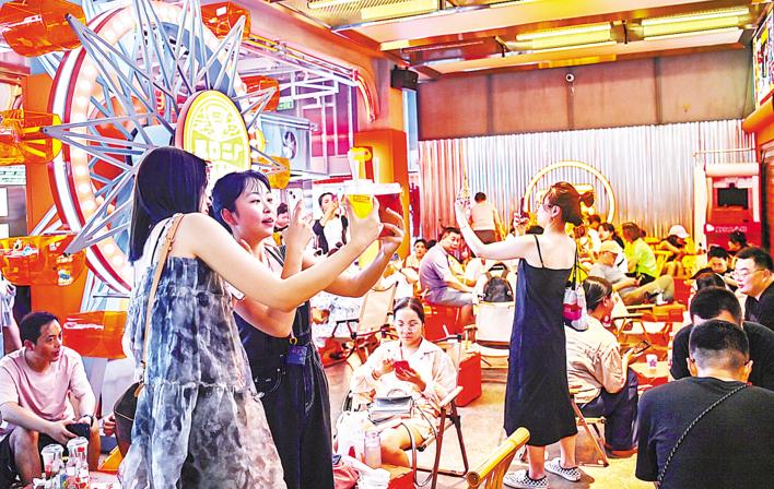 People make sparkling water by themselves at the Erchang fun fair on August 5 in Wuhan, Hubei' capital city.