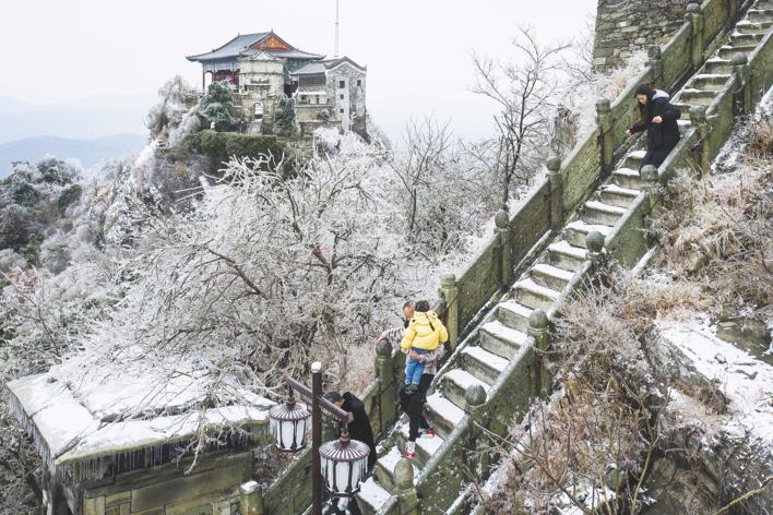 Photo taken on Dec. 16 shows the snow-covered Mulan Mountain in Huangpi District, Wuhan. Wuhan ushered in its first snow of this winter as a cold wave hit the city in recent days.