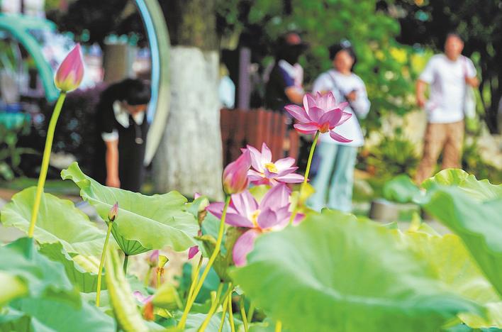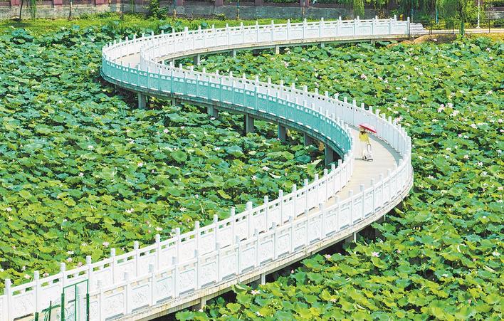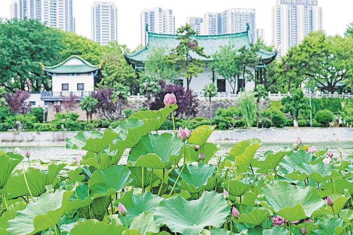 The blooming lotus flowers in the Tan Xinpei Park, Wuhan. (Photo: Jimu News/Song Zhongtao, Huang Shifeng, Liu Zhongcan and Wang Yongsheng)