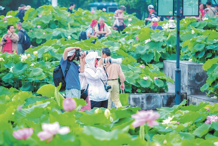 The blooming lotus flowers by the Guqintai tourist spot, Wuhan. (Photo: Jimu News/Song Zhongtao, Huang Shifeng, Liu Zhongcan and Wang Yongsheng)