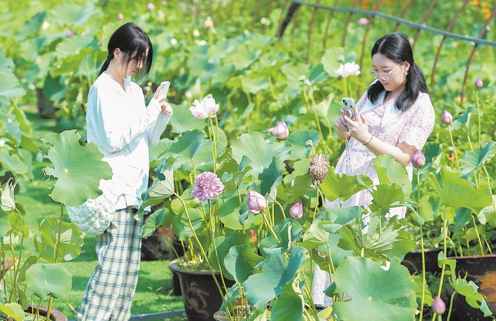 Tourists are enjoing lotus flowers in the Hongshiliu Village, Wuhan. (Photo: Jimu News/Song Zhongtao, Huang Shifeng, Liu Zhongcan and Wang Yongsheng)