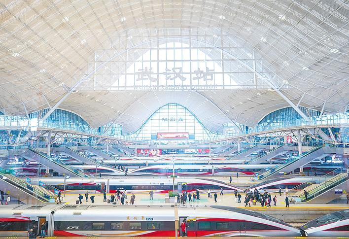 Photo taken on Feb. 2, 2026 shows passengers at the platforms of Wuhan Railway Station in Wuhan, Hubei Province. The 40-day Spring Festival travel rush, also known as chunyun, kicked off across the country on the day. A total of 539 million passenger trips are expected to be made by railway nationwide during this period.