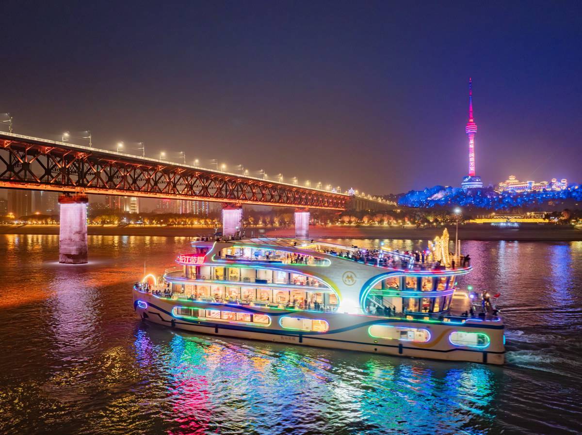 Photos taken on Feb. 4, 2026 show the flagship vessel "Yangtze River Glory" back to business after annual maintenance and system upgrades, in Wuhan, Hubei Province. As the Chinese New Year approaches, the cruise ship invites tourists to experience Spring Festival-themed journey.
