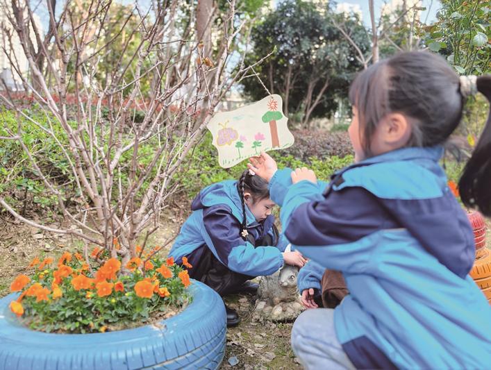 Children of a kindergarten in Wuhan hang signs on trees on March 11, 2026. March 12 marks the 48th National Tree Planting Day in China. In recent days, various tree-planting activities have been organized across Hubei.